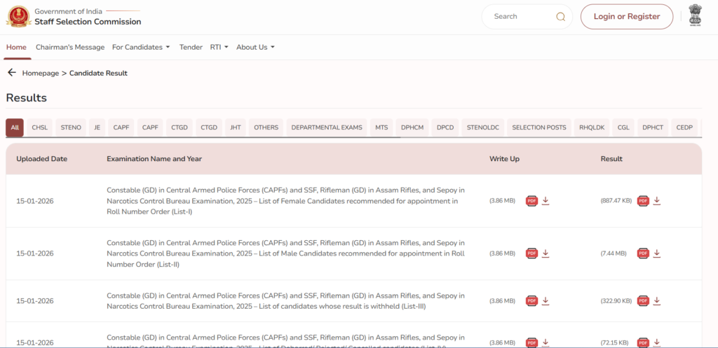 SSC GD Final Result 15 January 2026 को जारी किया गया है।